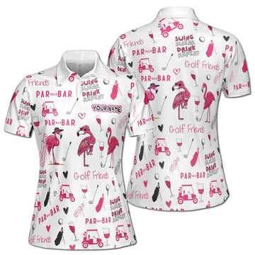 Flamingo Pineapple Aloha Golf Polo Shirt, Summer Tropical Vacation Button Down, Funny Golfer Gift
